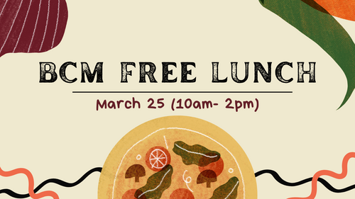 The church will be providing free lunch at the BCM on March 25th from 10:00 am-2:00 pm. If you would like to volunteer, sign up in the link below. See Brad Jackson for any additional information.