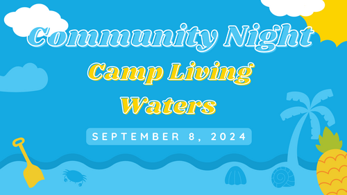 Join us for our annual back to school community night at Camp Living Waters! There will be a slide and pool available, so come ready for some water fun! It will be from 4-6 p.m.
