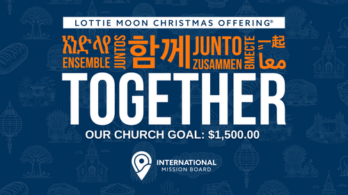 It is time for our annual Lottie Moon Christmas Offering! Our church goal is $1,500.