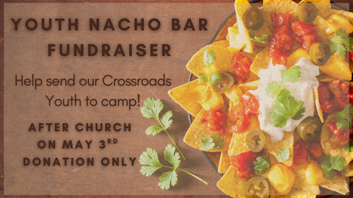 No need for lunch plans on May 3rd! Help support our Youth for camp, grab a plate and hit the nacho bar after service!